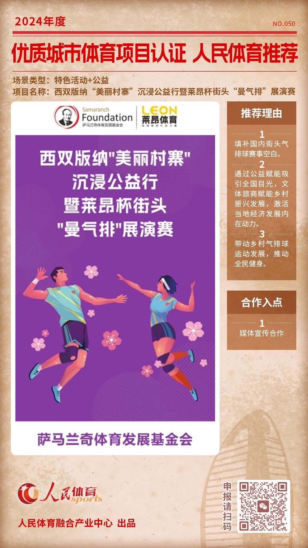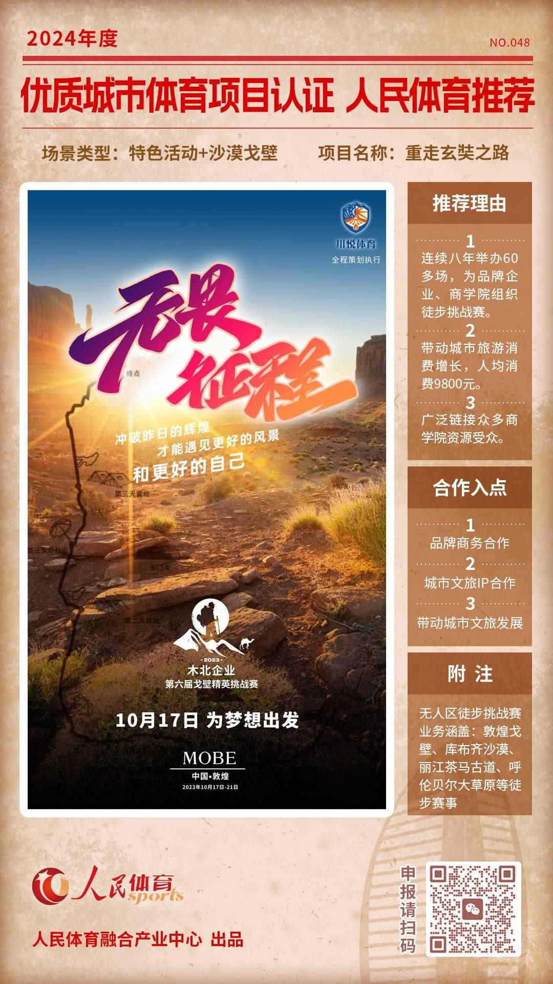 人民體育發(fā)起的“優(yōu)質(zhì)體育賽事及活動認證推薦計劃”,2024年04月推出第六批,共9個推薦項目。