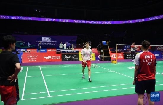 當(dāng)日,中國(guó)羽毛球隊(duì)在成都高新區(qū)體育中心進(jìn)行訓(xùn)練,備戰(zhàn)將于4月27日起在此舉行的2024年羽毛球湯姆斯杯暨尤伯杯比賽。