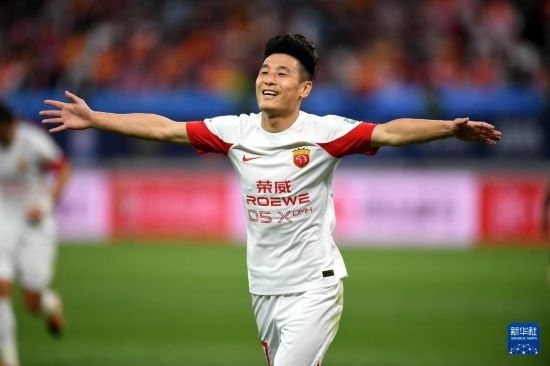 5月1日,上海海港隊(duì)球員武磊在比賽中慶祝進(jìn)球。