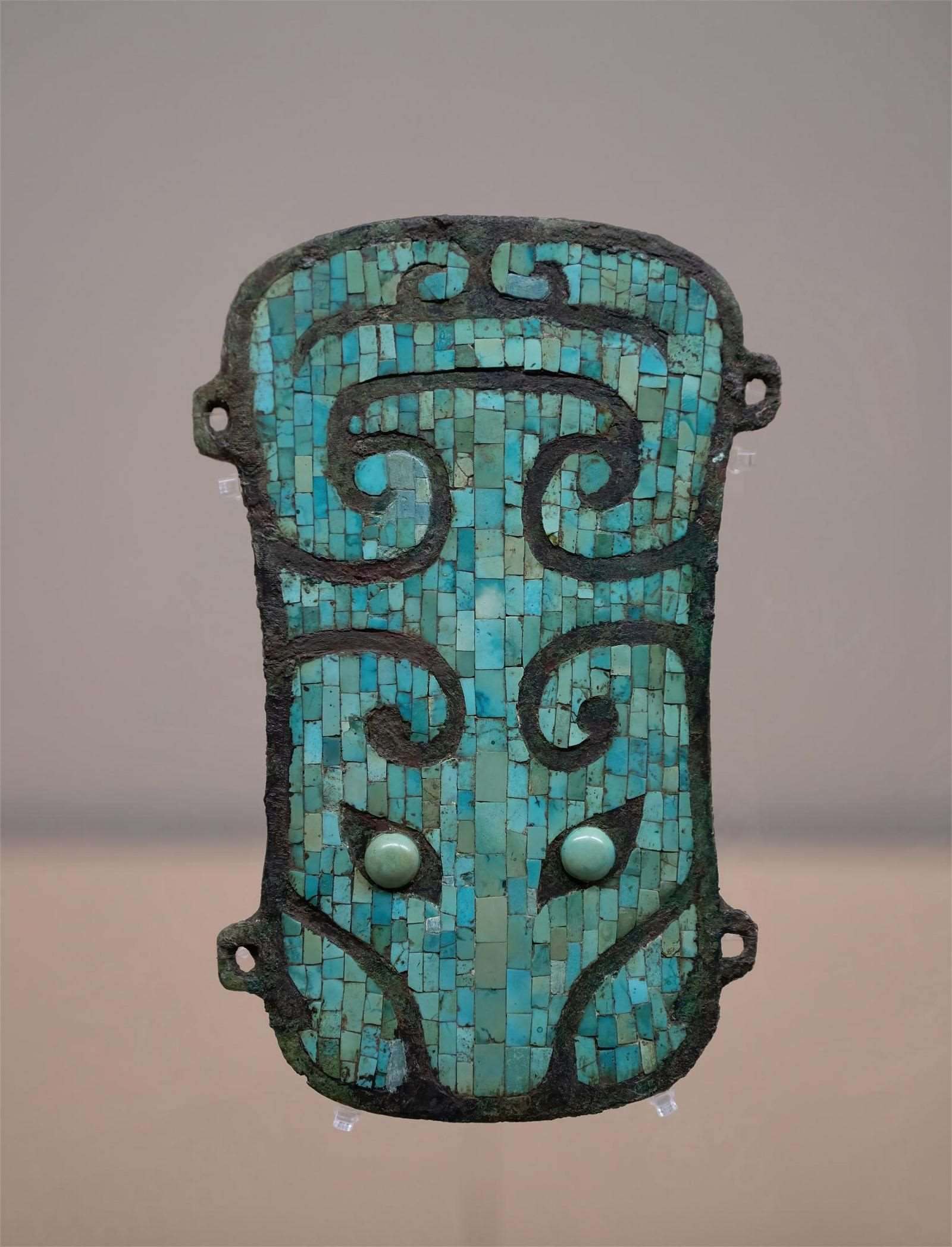 3500年前的鑲嵌綠松石獸面紋銅牌飾,是二里頭夏都遺址博物館的“頂流”。它器身用貴金屬青銅鑄出主體框架,略微拱起的弧形銅胎上,鑲嵌著數(shù)百片綠松石,神奇絢爛。它的發(fā)掘地二里頭遺址是中國古代文獻(xiàn)記載的第一個(gè)王朝夏朝的都城,牌飾上,綠幽幽的“眼睛”見證了“最早的中國”。