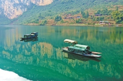 兩岸青山夾碧水,一江青綠被畫舫式的動力渡船攪出漣漪?!皝恚瑤泱w驗下啥子叫水上人家!”酉陽縣住建委副主任劉繼明熟練地接過“船把式”拋來的纜繩,牽引著熄火后的船緩緩靠岸,以免船底與碼頭石階磕碰,接著一躍登船,又把記者拉上去。