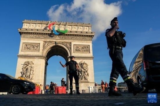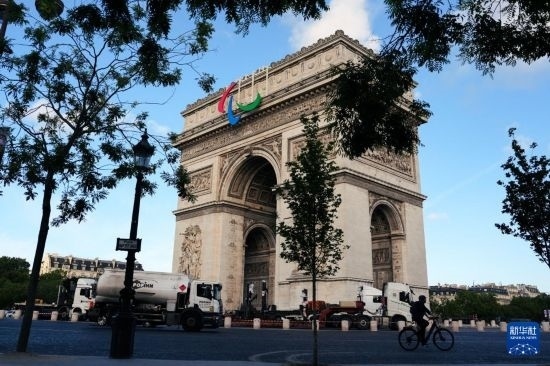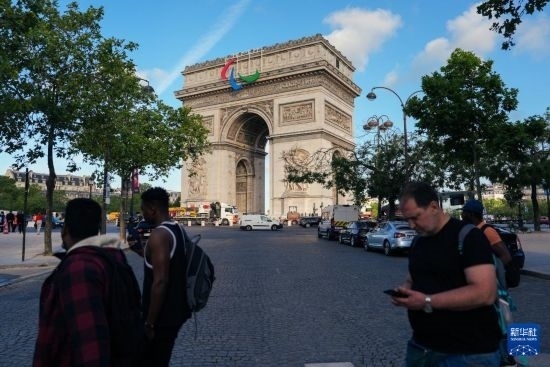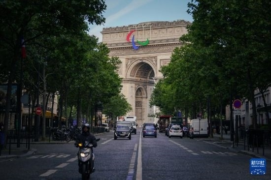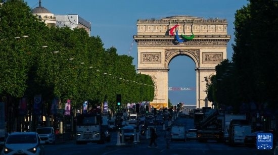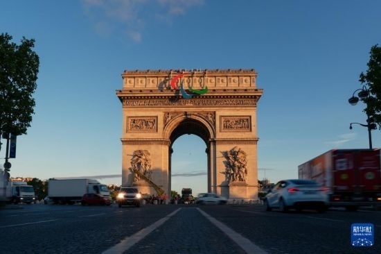 這是6月28日在法國(guó)巴黎拍攝的懸掛有殘奧會(huì)標(biāo)志的凱旋門。新華社記者 許暢 攝