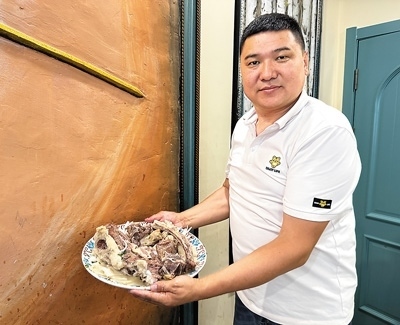 手抓羊肉的具體吃法也有講究。肉上桌后,主人親手把肉切成小塊遞給每位客人享用:盆骨和小腿肉給德高望重的長(zhǎng)者,胸脯肉給女婿或兒媳,頸椎骨分給姑娘們,再割一塊羊耳朵給年齡最小的孩子。