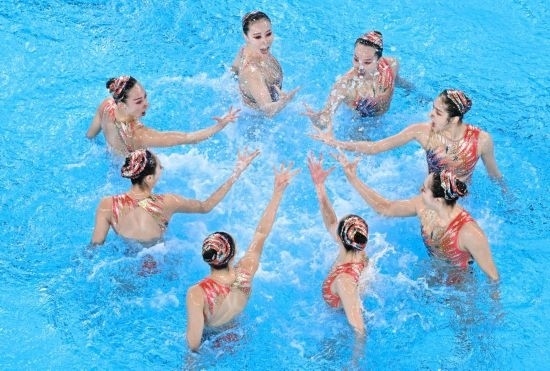 技巧自選比賽,花游姑娘們延續(xù)了完美狀態(tài),無(wú)論是開(kāi)場(chǎng)托舉,比賽中的托舉、轉(zhuǎn)體和翻騰,還是隊(duì)形排列、動(dòng)作連接、水域運(yùn)用幅度,都與背景音樂(lè)十分契合,再度展現(xiàn)出高人一籌的實(shí)力。最終,姑娘們以三場(chǎng)比賽穩(wěn)居第一的優(yōu)異表現(xiàn),贏得了這枚金牌。