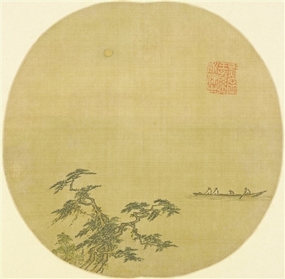 中國(guó)畫《松溪泛月圖》,作者南宋夏圭。故宮博物院藏