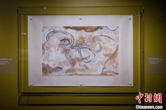 當(dāng)?shù)貢r(shí)間9月4日,百余件遼寧三燕文物亮相紐約華美協(xié)進(jìn)社中國美術(shù)館秋季特展《龍城之金:遼寧三燕文物選萃,337-436》。圖為展出的玄武圖摹本。 中新社記者 王帆 攝