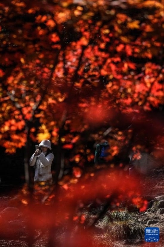 10月7日,遼寧本溪老邊溝風景區(qū)內(nèi)的楓樹正值最佳觀賞期,很多游客來到這里觀賞金秋“楓”景。