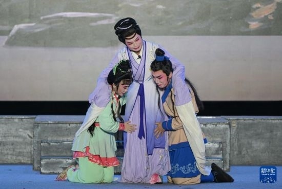 10月6日,演員在??谑腥f綠園表演瓊劇。