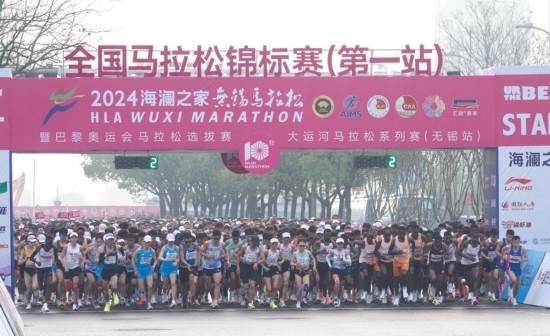 3月24日,參賽選手在比賽中出發(fā)。當(dāng)日,2024無錫馬拉松暨全國馬拉松錦標(biāo)賽(第一站)、巴黎奧運(yùn)會馬拉松選拔賽、大運(yùn)河馬拉松系列賽(無錫站)在江蘇省無錫市舉行。新華社記者 楊磊 攝