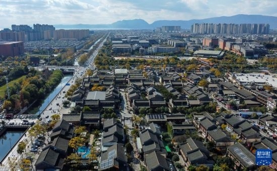 12月8日拍攝的官渡古鎮(zhèn)一景(無人機(jī)照片)。