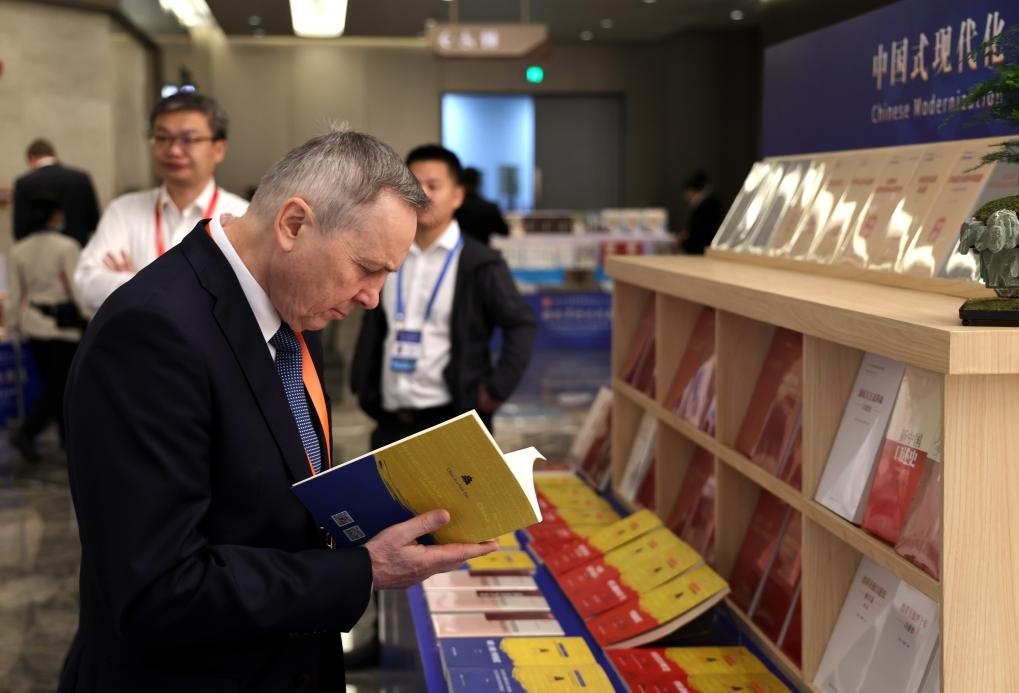 2024年12月3日,2024年“讀懂中國”國際會議與會嘉賓在會場閱讀書籍。新華社記者盧漢欣攝