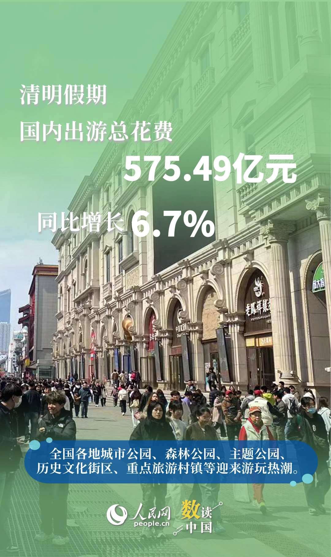 經(jīng)文化和旅游部數(shù)據(jù)中心測算,清明節(jié)假期3天,國內(nèi)出游總花費575.49億元,同比增長6.7%。