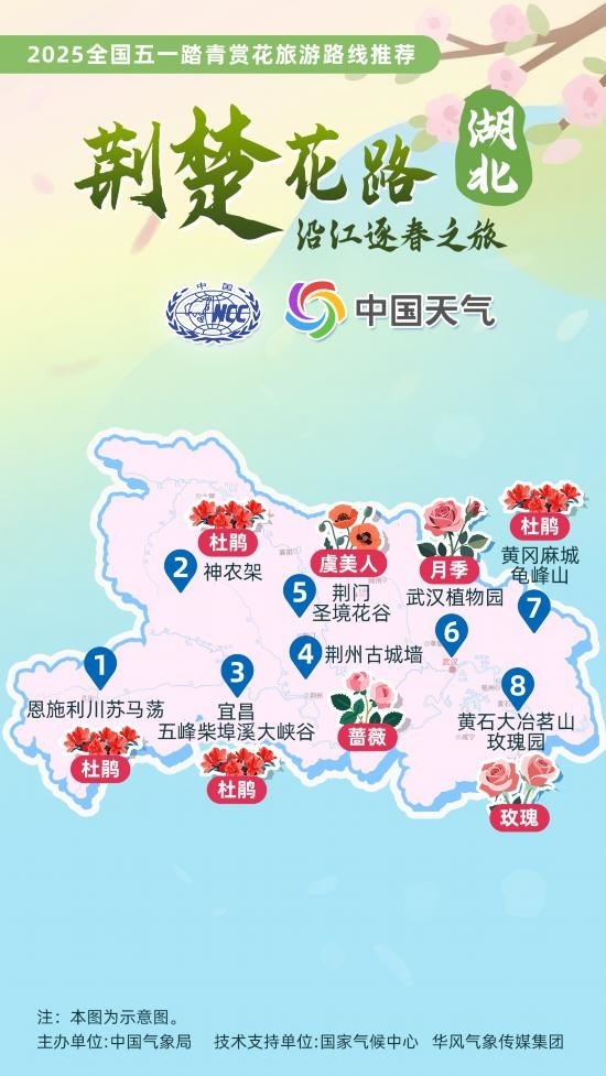 4月23日,中國(guó)氣象局參與文化和旅游部2025年全國(guó)“五一”文化和旅游消費(fèi)周活動(dòng),推出12條 “五一踏青賞花旅游路線”。每一條路線,都串聯(lián)起春日里最動(dòng)人的景致。在即將到來的五一假期,不妨從這些路線中挑選你心儀的一條,趁著春光正好,開啟一場(chǎng)與春日中國(guó)的浪漫邂逅。