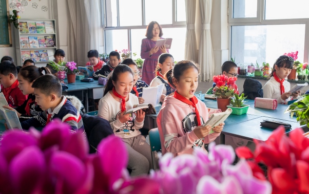 呼和浩特市通順街小學(xué)的學(xué)生們在朗讀課文。