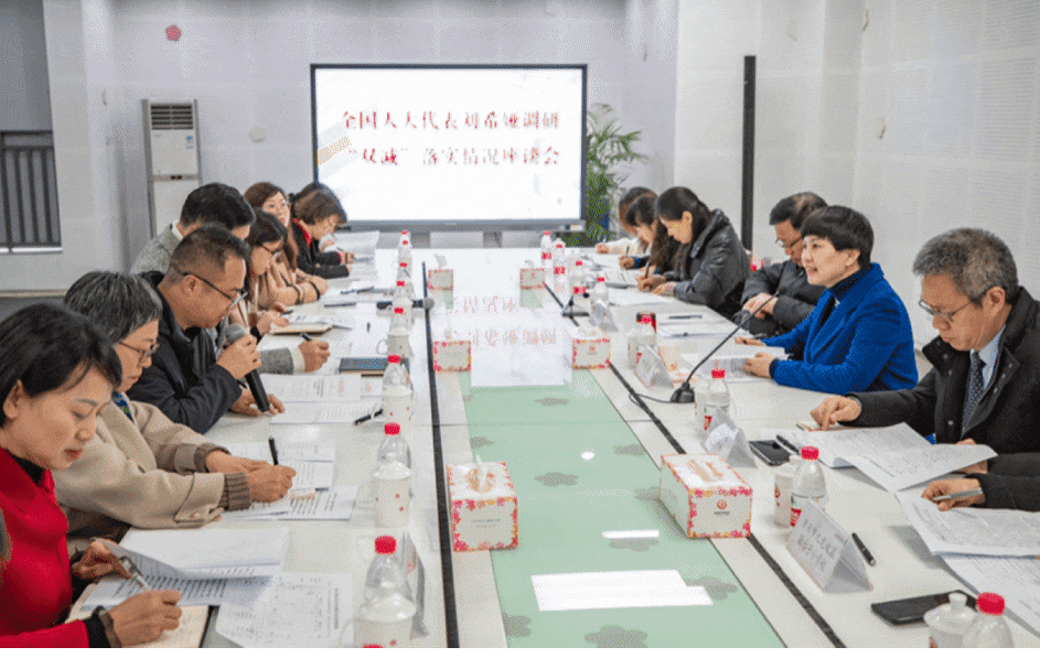 ↑2月24日,在謝家灣學(xué)校,劉希婭與部分家長(zhǎng)代表座談交流,收集大家對(duì)“雙減”政策在落地執(zhí)行中的意見(jiàn)和建議。