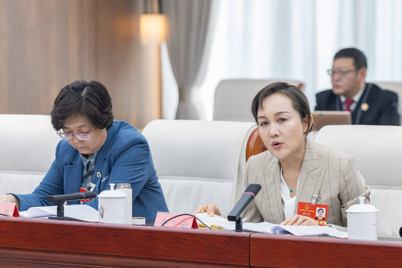 3月9日,全國人大代表孟達(dá)英(左)在審議“兩高”工作報告時建議,最高人民法院應(yīng)出臺有關(guān)破壞濕地行為定罪量刑標(biāo)準(zhǔn)的有關(guān)法律配套司法解釋。草原云記者 馬建兵 攝