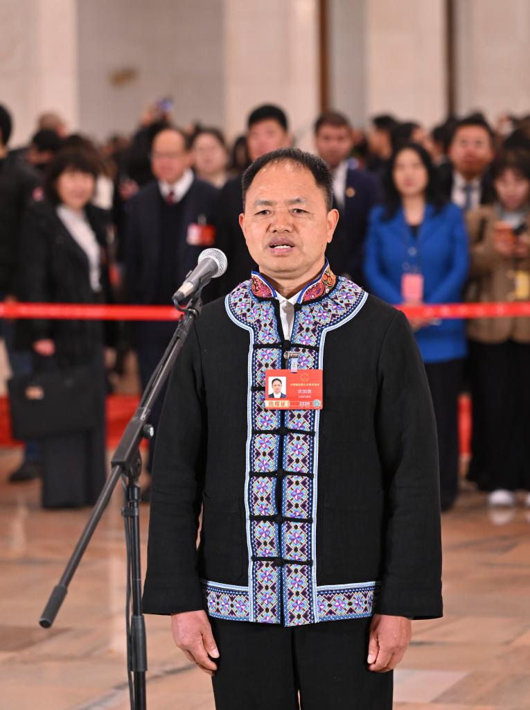 3月5日,第十四屆全國(guó)人民代表大會(huì)第四次會(huì)議首場(chǎng)“代表通道”集中采訪活動(dòng)在北京人民大會(huì)堂舉行。這是全國(guó)人大代表農(nóng)加貴接受媒體采訪?!?/span>