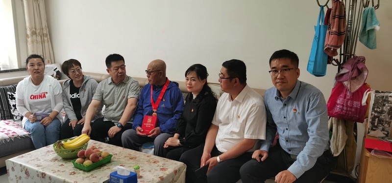 當(dāng)天下午,各黨組織代表共同來到阿左旗額魯特街道黨工委所屬社區(qū),入戶慰問了3名老黨員與1名貧困戶,為他們送去了生活物資,還為90歲高齡老黨員常根禎及86歲老黨員張世云佩戴了“光榮在黨五十年”榮譽(yù)勛章。幾位老黨員非常感動(dòng),給大家講起了自己當(dāng)年的故事。