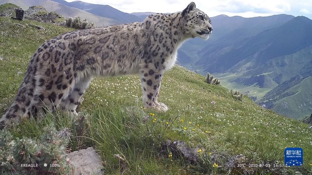 這是三江源國(guó)家公園內(nèi)紅外相機(jī)捕捉到的雪豹(2020年7月3日攝)。