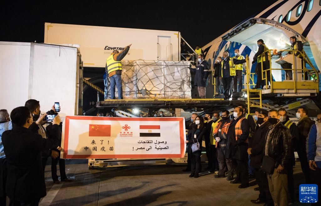 2021年2月23日,中國援助埃及的首批新冠疫苗抵達(dá)埃及開羅國際機(jī)場。新華社記者 鄔惠我 攝