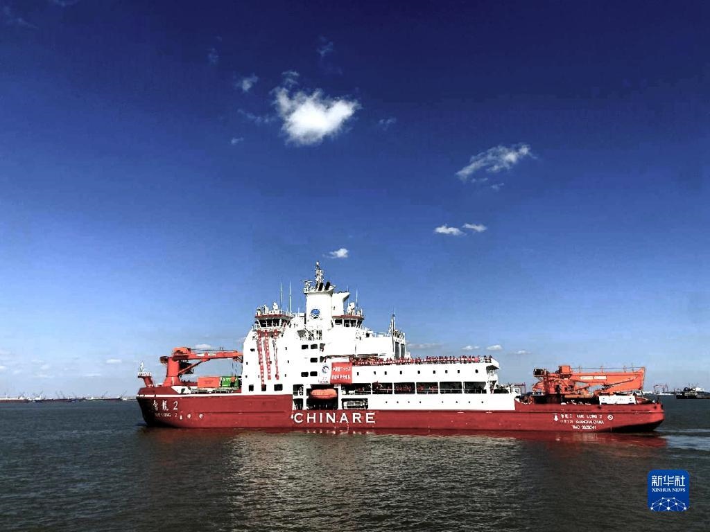 2020年11月10日,中國第37次南極科學考察隊乘坐“雪龍2”號極地科考破冰船從上海起航,奔赴南極執(zhí)行科學考察任務(wù),這是“雪龍2”號極地科考破冰船駛離碼頭。新華社發(fā)(中國極地研究中心供圖)