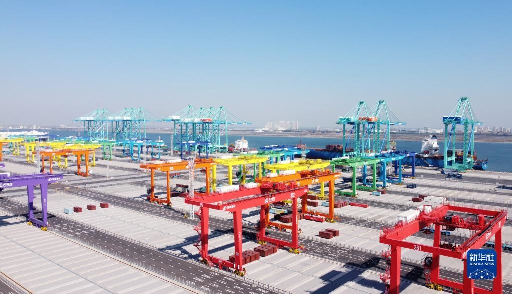 這是天津港北疆港區(qū)C段智能化集裝箱碼頭(2021年10月17日攝,無人機照片)。新華社記者 趙子碩 攝