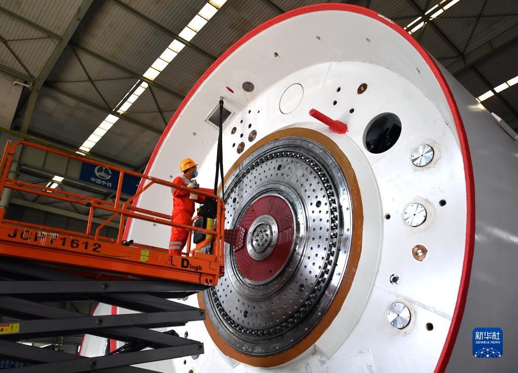 工人在位于河南省鄭州市的中鐵工程裝備集團(tuán)盾構(gòu)機(jī)總裝車(chē)間作業(yè)(2020年3月18日攝)。新華社記者 李嘉南 攝