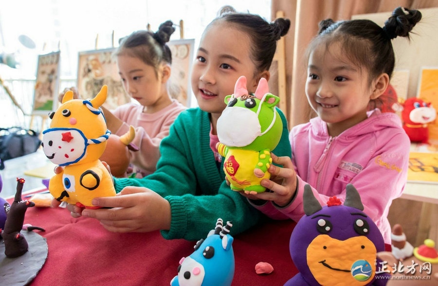 2月7日,小朋友們在呼和浩特市玉泉區(qū)青少年宮捏制“萌?!别ね磷髌?,表達(dá)對新春的美好祝愿。春節(jié)前夕,玉泉區(qū)青少年宮舉辦巧手“萌?!庇麓夯顒樱∨笥褌冊诶蠋煹闹笇?dǎo)下制作生肖牛黏土作品,喜迎農(nóng)歷牛年,表達(dá)對新年的美好祝愿。 攝影/北方新報正北方網(wǎng)記者 牛天甲